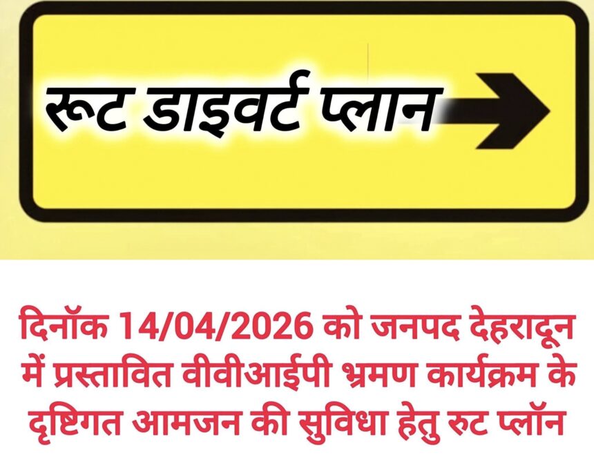 रुट_डाइवर्ट_प्लान➡️ दिनॉक 14/04/2026 को जनपद देहरादून में प्रस्तावित VVIP भ्रमण कार्यक्रम के दृष्टिगत आमजन की सुविधा हेतु रुट प्लॉन : सहारनपुर/रूड़की/दिल्ली जाने वाले वाहनों हेतु प्लान- 1️⃣- देहरादून शहर क्षेत्र से सहारनपुर/रूड़की/दिल्ली जाने वाले वाहन हेतु रूट-A- शिमला बाईपास तिराहा- नयागाँव रोड - धर्मावाला चौक - बेहट होते हुये अपने गंतव्य हेतु जा सकेंगे। #B- रिस्पना पुल- जोगीवाला - लालतपड-…