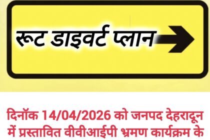 दिनॉक 14/04/2026 को जनपद देहरादून में प्रस्तावित VVIP भ्रमण कार्यक्रम के दृष्टिगत रुट-डाइवर्ट प्लॉन