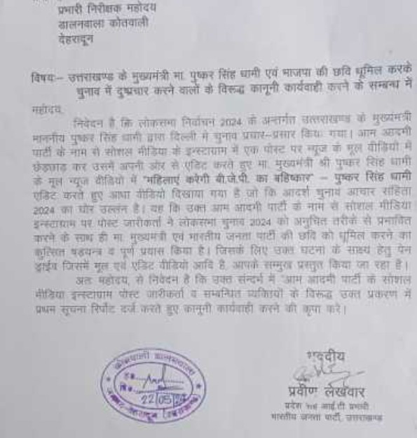 सीएम की छवि को धूमिल करने के आरोप मे भाजपा ने दर्ज कराया मुकदमा