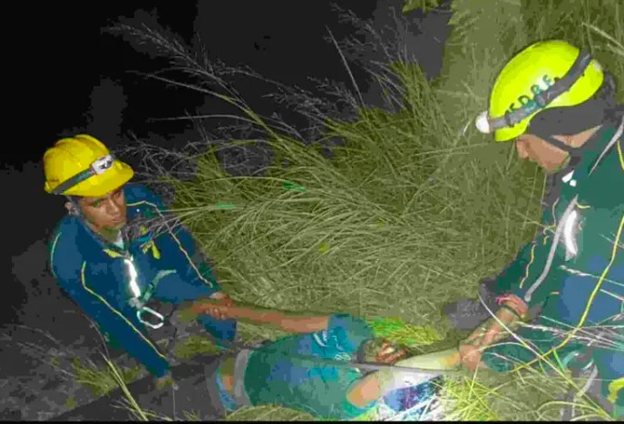 डामटा के पास SDRF ने खाई में गिरे बाइक सवार को बचाया
