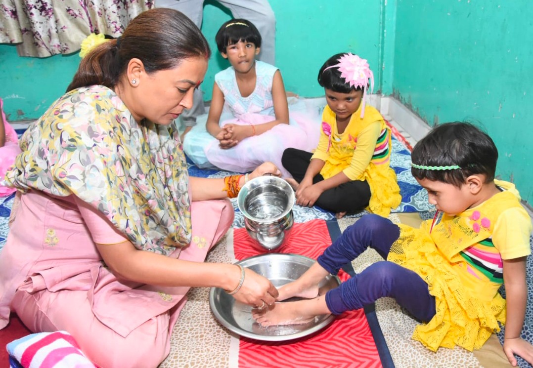 महिला एवं बाल विकास मंत्री रेखा आर्या ने देहरादून के राजकीय शिशु एवं बालिका निकेतन में किया कन्या पूजन