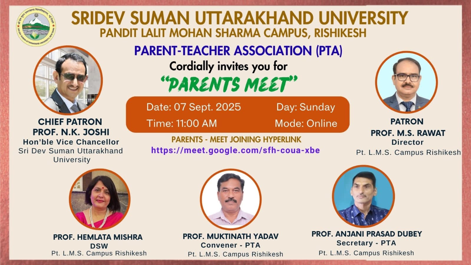 श्री देव सुमन उत्तराखंड विवि के कैंपस पंडित ललित मोहन शर्मा परिसर में “अभिभावक शिक्षक संघ” की एक ऑनलाइन बैठक का किया गया आयोजन