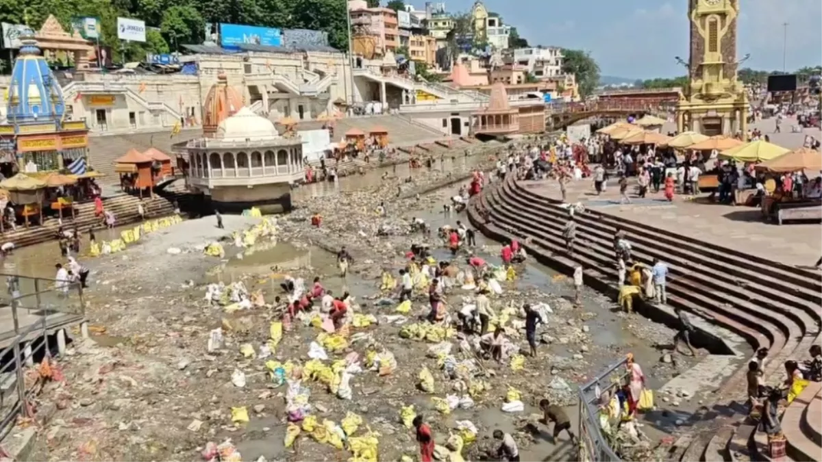 हरकी पैड़ी पर सूखी गंगा, आचमन के लिए भी जल नहीं; हो रही धन की खोज
