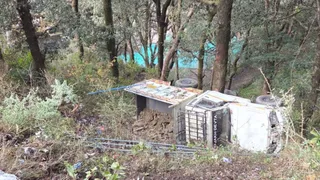 मसूरी : ब्रेक फेल होने से खाई में गिरा पिकअप वाहन, दो लोग बाल-बाल बचे