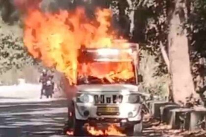 चलती पिकअप में अचानक लगी आग,चालक ने कूदकर बचाई जान
