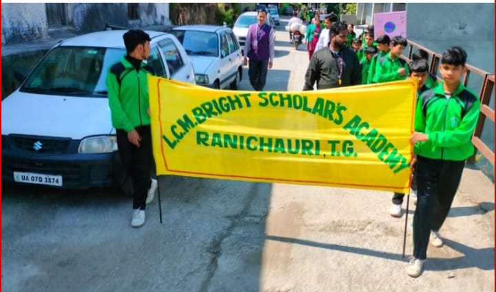 लोकजन एक्सप्रेस चम्बा : आज दिनांक 05.06.2025 को अन्तर्राष्ट्रीय पर्यावरण दिवस के सुअवसर पर एल•सी•एम•ब्राईट स्काॅलर्स एकेडमी रानीचौरी टिहरी गढ़वाल के छात्र-छात्राओं द्वारा रानीचौरी, चम्बा बाजार में पर्यावरण विषयक रैली निकाल कर जागरूक किया गया तत्पश्चात विद्यालय के प्रधानाचार्य श्री अनन्त राम उनियाल द्वारा शिक्षक-शिक्षिकाओं तथा विद्यार्थियों को जीवन प्रतिज्ञा दिलाकर प्लास्टिक के बैग की जगह जूट से बने बैग का उपयोग करने की सलाह दी गई।इस क्रम में विद्यालय प्रबंधक श्री मनीष बहुगुणा ने पेड़ों के महत्व के बारे में बताया साथ ही छात्र-छात्राओं द्वारा पुण्डरकाक्षिणी मन्दिर के प्रांगण में साफ-सफाई की गई।इस अवसर पर विद्यालय के शिक्षक श्री प्रमोद बहुगुणा, अंकित बहुगुणा, सेवकराम बहुगुणा, वंदना बहुगुणा, कुसुम मंमगाई, माधुरी बहुगुणा,रंगवती बहुगुणा, ज्योति नेगी तथा रिमझिम खंडियाल मौजूद थे।