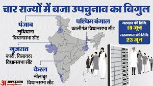 19 जून को पंजाब की लुधियाना वेस्ट, पश्चिम बंगाल की कालिगंज,केरल की निलाम्बुर, गुजरात की विदासवर और कडी सीटों पर उपचुनाव करवाए गए थे, जिसके नतीजे सामने आ गए हैं।