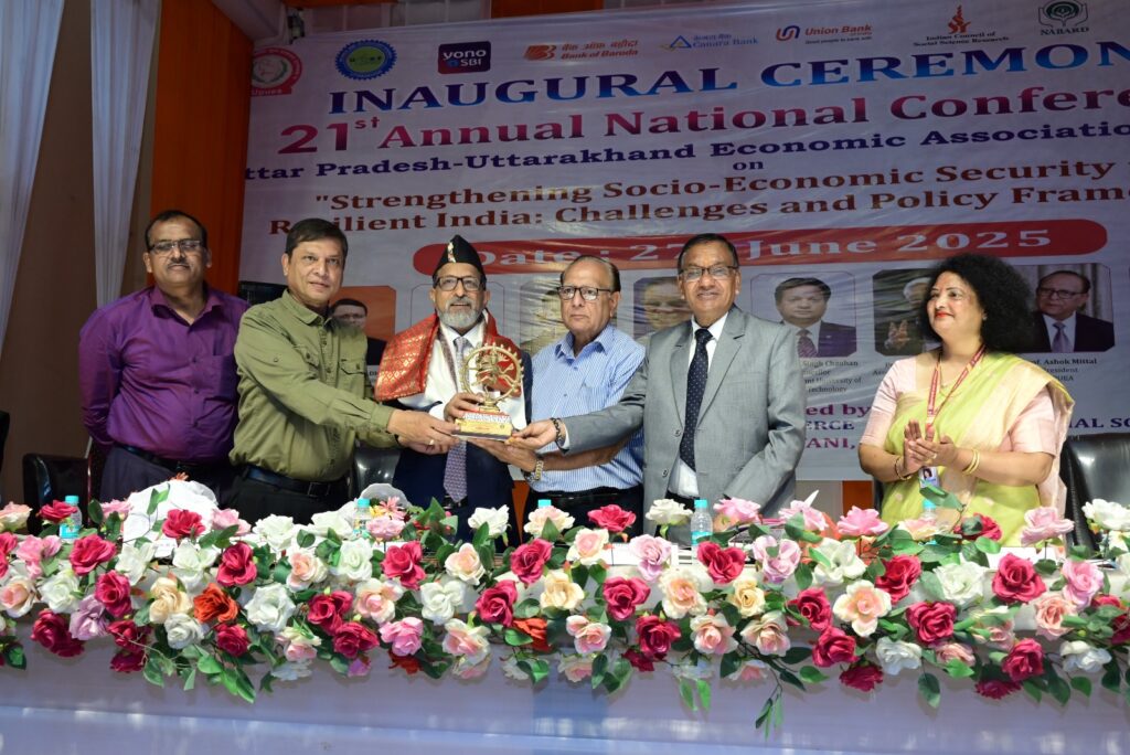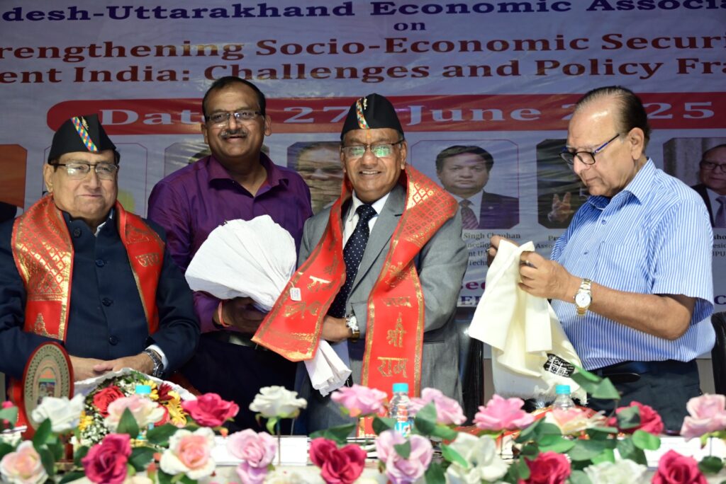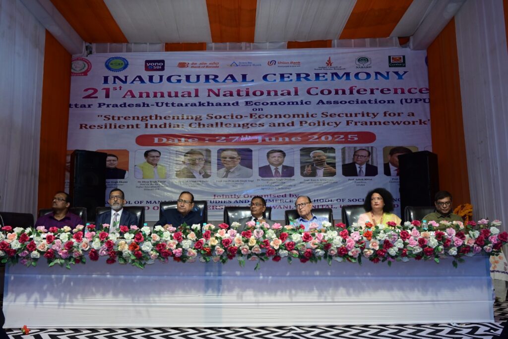 उत्तराखंड में शुरू हुआ तीन दिवसीय आर्थिक अधिवेशन विकसित भारत की नींव रखने को उत्तराखंड में हुआ UPUEA का ऐतिहासिक शुभारंभ उत्तराखंड मुक्त विश्वविद्यालय, हल्द्वानी में शुक्रवार को उत्तर प्रदेश-उत्तराखंड आर्थिक संघ (UPUEA) का 21वां वार्षिक राष्ट्रीय सम्मेलन भव्यता के साथ प्रारंभ हुआ। तीन दिवसीय इस सम्मेलन का विषय “एक सशक्त भारत के लिए सामाजिक-आर्थिक सुरक्षा को सुदृढ़ करना: चुनौतियाँ और नीतिगत रूपरेखा” रखा गया है, जिसमें देशभर के आर्थिक विशेषज्ञ, शिक्षाविद, शोधार्थी और नीति-निर्माता भाग ले रहे हैं।कार्यक्रम की शुरुआत दीप प्रज्वलन, कुलगीत और पुष्पांजलि अर्पण से हुई। उत्तराखंड के मुख्यमंत्री श्री पुष्कर सिंह धामी तथा राज्य के उच्च शिक्षा मंत्री डॉ. धन सिंह रावत वीडियो कॉन्फ्रेंसिंग के माध्यम से समारोह से जुड़े। शिक्षा मंत्री ने सम्मेलन को केवल एक अधिवेशन नहीं, बल्कि एक ऐसा मंच बताया जहाँ ज्ञान के नए विमर्श जन्म लेंगे। उन्होंने कहा कि इस अधिवेशन का उत्तराखंड में आयोजन गौरव की बात है, और इससे प्रदेश की शैक्षिक-नीतिगत दिशा को नई ऊर्जा मिलेगी। मुख्यमंत्री श्री पुष्कर सिंह धामी ने अपने संबोधन में आशा व्यक्त की कि इस सम्मेलन से जो विचार और सुझाव सामने आएंगे, वे राज्य के लिए मार्गदर्शक सिद्ध होंगे और सरकार उन पर शीघ्र अमल करेगी। इस अवसर पर विभिन्न लेखकों की पुस्तकों का विमोचन भी हुआ। जिन लेखकों की पुस्तकें इस अवसर पर लोकार्पित हुईं, उनमें प्रो. विकास प्रधान, सौरभ वर्मा, डॉ. सरिता द्विवेदी और प्रो. अनुप कुमार प्रमुख हैं। इसके अतिरिक्त, संस्था के शोध जर्नल, सम्मेलन स्मारिका और अन्य प्रकाशनों का विमोचन भी किया गया।उत्तराखंड मुक्त विश्वविद्यालय के कुलपति प्रो. ओ.पी.एस. नेगी ने उद्घाटन समारोह को संबोधित करते हुए कहा कि यह अधिवेशन केवल दो राज्यों तक सीमित नहीं है, बल्कि यह विकसित भारत की नींव रखने का एक सशक्त प्रयास है। उन्होंने इसे अनुभव और ऊर्जा का अद्भुत संगम बताते हुए कहा कि इसमें युवा शोधार्थियों से लेकर सेवानिवृत्त विशेषज्ञों तक की सहभागिता, विमर्श को समृद्ध बनाएगी। विश्वविद्यालय के बारे में बोलते हुए उन्होंने कहा कि उत्तराखंड मुक्त विश्वविद्यालय केवल डिग्रियाँ प्रदान करने वाला संस्थान नहीं, बल्कि नवाचार, प्रौद्योगिकी और गुणवत्ता का केंद्र है।चंपावत निवासी प्रो. धर्मकीर्ति जोशी को इस अवसर पर UPUEA की ओर से सम्मानित किया गया। अपने वक्तव्य में उन्होंने भारत के सामाजिक-आर्थिक ढांचे की मजबूती के लिए डिजिटल इंफ्रास्ट्रक्चर को फिजिकल संरचना जितना ही आवश्यक बताया।सम्मेलन की रूपरेखा संस्था के महासचिव प्रो. विनोद कुमार श्रीवास्तव ने प्रस्तुत की। संचालन उत्तराखंड मुक्त विश्व