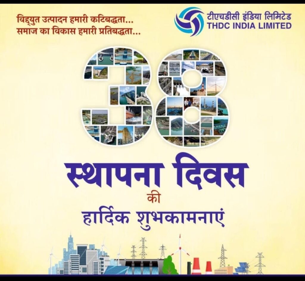 नई टिहरी। टीएचडीसी इंडिया लिमिटेड टिहरी कॉम्प्लेक्स का 38वां स्थापना दिवस मनाया गया। टीएचडीसीआईएल के बहुउद्देशीय प्रांगण में स्थापना दिवस समारोह का शुभारंभ टिहरी काॅप्लेक्स के अधिशासी निदेशक एलपी जोशी ने किया। कोटेश्वर परियोजना स्थल पर मुख्य महाप्रबंधक एमके सिंह ने ध्वजारोहण किया।