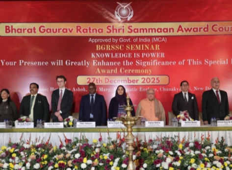 सहयोगी संवाददाता लोकजन एक्सप्रेस नई दिल्ली, भारत गौरव रत्न श्री सम्मान परिषद (BGRSSC) द्वारा राजधानी दिल्ली के द अशोक होटल, चाणक्यपुरी में ‘भारत गौरव रत्न श्री सम्मान’ समारोह का भव्य आयोजन किया गया। समारोह में देश-विदेश से आए विशिष्ट अतिथियों, राजनयिकों, सामाजिक नेताओं एवं सम्मानित विभूतियों सहित 200 से अधिक प्रतिभागियों की गरिमामयी उपस्थिति रही।इस अवसर पर कई अंतरराष्ट्रीय प्रतिनिधियों की उपस्थिति ने समारोह की गरिमा को और बढ़ाया। प्रमुख रूप से टिमोर-लेस्ते के राजदूत महामहिम श्री कार्लिटो नून्स, तंज़ानिया की उच्चायुक्त महामहिम सुश्री अनिसा कपुफी म्बेगा, तथा ज़िम्बाब्वे, लिथुआनिया, वेनेज़ुएला और पापुआ न्यू गिनी से आए वरिष्ठ राजनयिक कार्यक्रम में उपस्थित रहे।समारोह को संबोधित करते हुए कलराज मिश्र ने राष्ट्रीय विकास और जनभागीदारी की व्यापक दृष्टि पर प्रकाश डाला। उन्होंने प्रधानमंत्री नरेंद्र मोदी के ‘मन की बात’ कार्यक्रम का उल्लेख करते हुए कहा कि यह पहल आम नागरिकों से सीधा संवाद स्थापित करने का एक सशक्त और परिवर्तनकारी माध्यम बन चुकी है। उन्होंने कहा कि मन की बात के माध्यम से प्रधानमंत्री ने सामाजिक जागरूकता, उत्तरदायित्व और सकारात्मक संवाद को बढ़ावा दिया है, जिससे देश में जन-केंद्रित परिवर्तन की दिशा में महत्वपूर्ण कार्य हुआ है। उन्होंने यह भी कहा कि भारत गौरव रत्न श्री सम्मान जैसे आयोजन समाज के विभिन्न क्षेत्रों में कार्य कर रहे लोगों को राष्ट्रनिर्माण के लिए प्रेरित करते हैं।इस अवसर पर कविता बजाज, मुख्य कार्यकारी अधिकारी, भारत गौरव रत्न श्री सम्मान परिषद, ने कहा,“भारत गौरव रत्न श्री सम्मान की परिकल्पना उन व्यक्तियों को सम्मानित करने के उद्देश्य से की गई है, जिनकी सेवा, समर्पण और मूल्य देश के सामाजिक और सांस्कृतिक ताने-बाने को सुदृढ़ करते हैं। विभिन्न क्षेत्रों—जैसे सामाजिक सेवा, खेल और संस्कृति—में योगदान देने वाले व्यक्तित्वों को सम्मानित कर हम जिम्मेदार नागरिकता और राष्ट्रप्रथम सोच को प्रेरित करना चाहते हैं।”समारोह में प्रमुख सम्मानितों में शामिल रहीं प्रसिद्ध बॉलीवुड अभिनेत्री अनु अग्रवाल, जिन्हें उनकी चर्चित फिल्म ‘आशिकी’ के लिए जाना जाता है। उन्हें योग और वेलनेस के क्षेत्र में उनके प्रभावशाली कार्यों के लिए सम्मानित किया गया, जिसके माध्यम से वे समग्र स्वास्थ्य, आंतरिक संतुलन और सचेत जीवनशैली को बढ़ावा दे रही हैं।इसके अतिरिक्त, 2010 कॉमनवेल्थ गेम्स के स्वर्ण पदक विजेता और प्रख्यात खेल व्यक्तित्व नरविजय सिंह को भी खेल के क्षेत्र में उनके उत्कृष्ट योगदान और युवाओं को अनुशासन व उत्कृष्टता के लिए प्रेरित करने हेतु सम्मानित किया गया।समारो