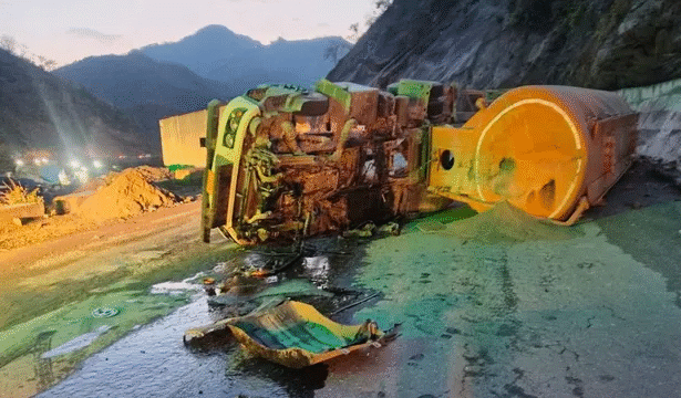जहां एमआरटीसी कंपनी का एक बल्गर ट्रक नंबर एचआर37 एफ 1274 सड़क पर पलटा हुआ था। जिसका वाहन स्वामी रविंद्र कुमार निवासी नियर मोहनवाला, नारायणगढ़ अंबाला हरियाणा है।