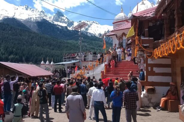 उत्तरकाशी। आगामी चारधाम यात्रा के आगाज के लिए मां गंगा की भोग मूर्ति विग्रह डोली शनिवार दोपहर को अभिजीत मुहूर्त में गंगोत्री धाम के लिए रवाना हो गई है। इस मौके पर मुखबा गांव के ग्रामीणों ने गंगा को कल्यो (कंडा) और स्थानीय फाफरे का भोग लगाकर नम आंखों के साथ छह माह के प्रवास के लिए भावुकता के साथ विदा किया। इस विशेष अवसर के लिए जनपद के विभिन्न क्षेत्रों और देश के विभिन्न प्रदेशों से श्रद्धालु मुखबा पहुंचे। गंगोत्री धाम के लिए रवाना हुई मां गंगा की डोली गंगा जी की भोग मूर्ति, विग्रह डोली में शनिवार दोपहर 12 बजकर 15 मिनट पर अभिजीत मुहूर्त में आर्मी बैंड और ढोल दमाऊं की अगुवाई और मुखबा धराली के समेश्वर देवता की देवडोली के साथ गंगोत्री धाम के लिए रवाना हो गई है।तीर्थ पुरोहितों और श्रद्धालुओं के साथ गंगा की डोली मुखबा-जांगला के सात किमी के जोखिम भरे मार्ग से होते हुए उसके बाद रात्रि विश्राम के लिए भैरों घाटी पहुंचेगी। भैरों मंदिर में रात्रि विश्राम के बाद डोली रविवार सुबह गंगोत्री धाम के लिए रवाना होगी। धाम में विशेष पूजा अर्चना के बाद अक्षय तृतीया पर गंगोत्री धाम के कपाट दोपहर 12 बजकर 15 मिनट पर श्रद्धालुओं के लिए छह माह के लिए खोल दिए जाएंगे।मुखबा गांव के ग्रामीणों के लिए गंगा जी की विदाई का समय भावुकतापूर्ण होता है। ग्रामीणों ने फाफरे का भोग और छह माह का कल्यो अर्से आदि के साथ मां को विदा किया। मुंबई से आए श्रद्धालुओं ने कहा कि यह उनके सौभाग्य का क्षण है कि वह इस पल के साक्षी बन रहे हैं। पहली बार वह इस आध्यात्मिक अनुभव को कभी नहीं भूलेंगे।यमुनोत्री धाम मंदिर समिति के प्रवक्ता पुरुषोत्तम उनियाल ने बताया कि इससे पहले खरसाली गांव से मां यमुना की डोली सुबह 8.45 पर रवाना होगी। मां यमुना की डोली खरसाली गांव से स्थानीय वाद्ययंत्रों के साथ मां यमुना के जयकारों के साथ यमुनोत्री के लिए रवाना होगी। खरसाली गांव से यमुना के भाई शनिदेव महाराज सोमेश्वर महाराज की डोली भी अपनी बहन को विदा करने यमुनोत्री जाएंगी।