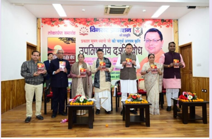 देहरादून। मुख्यमंत्री पुष्कर सिंह धामी ने कहा है कि उपनिषद भारतीय ज्ञान परम्परा का सार तत्व हैं और ऋषि मुनियों ने वेदों के गूढ़ तत्व को जिज्ञासुओं के लिए भाष्य रूप में उपनिषदों की रचना की। आज के दौर में उपनिषदों का महत्व बढ़ जाता है क्योंकि संपूर्ण विश्व को उपनिषदों में वर्णित भारतीय ज्ञान परम्परा के माध्यम से ही शांति और सौहार्द्र के मार्ग पर ले जाया जा सकता है। श्री धामी आज मुख्य सेवक सदन में राजनीतिक चिंतक, समाजसेवक और अध्यात्म के अध्येता प्रकाश सुमन ध्यानी की सद्य प्रकाशित पुस्तक “उपनिषदीय दर्शन बोध” के लोकार्पण समारोह को संबोधित कर रहे थे। पुस्तक का प्रकाशन मातृभाषा के लिए पिछले 28 वर्ष से समर्पित “विनसर पब्लिशिंग कंपनी” ने किया है। विनसर प्रकाशन से श्री ध्यानी की यह दूसरी पुस्तक प्रकाशित हुई है। इससे पूर्व उनकी विश्व इतिहास दर्शन प्रकाशित हो चुकी है।श्री धामी ने कहा कि उत्तराखंड की भूमि प्राचीन वैदिक ऋषियों की चिंतनस्थली रही है और प्राचीन ऋषियों से लेकर स्वामी विवेकानंद तक तमाम चिंतकों ने इसी भूमि पर मानव को जीने की उत्तम राह दिखाई।उन्होंने ध्यानी को शुभकामनाएं देते हुए कहा कि उनका चिंतन समाज के लिए उपयोगी होगा और उपनिषद जैसे सार तत्व को साधारण बोलचाल की भाषा में परोस कर उन्होंने बहुत सराहनीय कार्य किया है। इससे नई पीढ़ी अध्यात्म और भारतीय ज्ञान परम्परा की जानकारी से लाभान्वित होगी।कार्यक्रम की विशिष्ट अतिथि और विधानसभा अध्यक्ष श्रीमती ऋतु खंडूड़ी भूषण आज के दौर में संस्कार, संस्कृति और चेतना का ह्रास हो रहा है, ऐसे समय में भारतीय अध्यात्म के जरिए ही समाज को चेतना की ओर ले जाया जा सकता है और प्रकाश सुमन ध्यानी जी की पुस्तक उपनिषदीय दर्शन बोध इसमें मार्गदर्शिका सिद्ध हो सकती है।कार्यक्रम की अध्यक्षता कर रहे उत्तराखंड के पूर्व मुख्यमंत्री और महाराष्ट्र के पूर्व राज्यपाल भगत सिंह कोश्यारी ने कहा कि आज दुनिया में आर्टिफिशियल इंटेलीजेंस की बात हो रही है, इसका ज्ञान भी आवश्यक है लेकिन इसके साथ ही आध्यात्मिक इंटेलिजेंस का ज्ञान भी जरूरी है जो मानव मात्र को दर्शन का बोध कराता है।उन्होंने कहा कि प्रकाश सुमन ध्यानी का एक जीव विज्ञानी से अध्यात्म विज्ञानी के रूप में रूपांतरित हो जाना सिद्ध करता है कि अविनाशी ज्ञान ही श्रेष्ठ है और प्रकाश सुमन ध्यानी का अध्ययन समाज के लिए उपयोगी सिद्ध होगा, ऐसा विश्वास है।उपनिषदीय दर्शन बोध पुस्तक के लेखक प्रकाश सुमन ध्यानी ने सभी अतिथियों का स्वागत करते हुए कहा कि इस सभागार में देहरादून की सभी दिशाओं से लोग उन्हें आशीर्वाद देने पहुंचे हैं, इसके लिए उन्होंने हृदय से आभार व्यक्त किया।इससे पूर्व विनसर प्रकाशन के अधिष्ठ