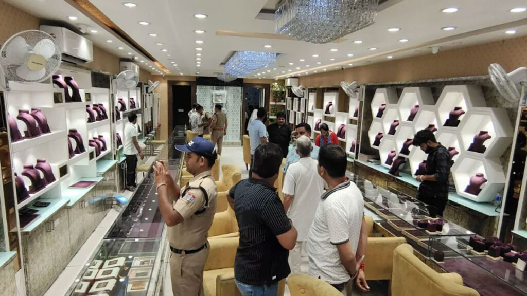 हरिद्वार ज्वेलरी शोरूम डकैतीहरिद्वार के श्री बालाजी ज्वेलर्स में हुई 5 करोड़ की डकैती की घटना से हड़कंप मच गया था। मामले की जांच की कमान एसटीएफ को सौंपी गई। बदमाशों की तलाश में पुलिस की पांच टीमें उत्तर प्रदेश, दिल्ली, बिहार, हरियाणा व राजस्थान भेजी, जबकि छह टीमों ने स्थानीय स्तर पर पड़ताल की।हरिद्वार के रानीपुर मोड़ स्थित श्री बालाजी ज्वेलर्स शोरूम में एक सितंबर को दिन दहाड़े हथियारबंद बदमाशों ने फायरिंग कर शोरूम स्वामी व स्टाफ की आंख में मिर्च स्प्रे डालकर पांच करोड़ रुपये के जेवरात लूट लिए थे। इससे व्यापारियों में आक्रोश है और कानून-व्यवस्था पर सवाल भी उठे।