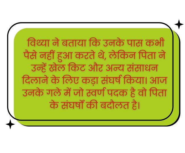 - विथ्या ने कहा, पिता की मेहनत और उनका विश्वास मुझे आज इस मुकाम पर ले आया