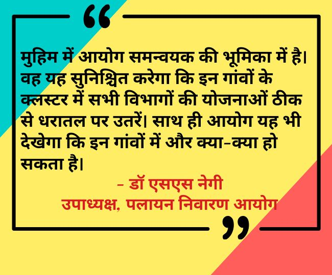 आजीविका विकास के लिए भी ठोस कदम उठाए जाएंगे। डॉ नेगी ने बताया कि इस मुहिम में आयोग को समन्वयक की भूमिका में है। वह यह सुनिश्चित करेगा कि वह इन गांवों के क्लस्टर में सभी विभागों की योजनाओं ठीक से धरातल पर उतरें।साथ ही आयोग यह भी देखेगा कि इन गांवों में और क्या-क्या हो सकता है। इसके लिए भी कार्ययोजना बनाने के लिए सरकार को प्रस्ताव भेजे जाएंगे। उन्होंने कहा कि इस पहल के परिणाम के आधार पर अन्य पलायन प्रभावित गांवों को द्वितीय चरण में लिया जाएगा।