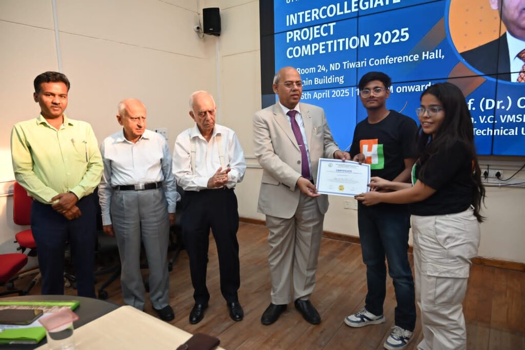 दिनांक 26 अप्रैल 2025 को, वीर माधो सिंह भंडारी उत्तराखंड प्रौद्योगिकी विश्वविद्यालय में World Intellectual Property Day के अवसर पर एक राज्यस्तरीय इंटरकॉलेजिएट प्रोजेक्ट प्रतियोगिता का आयोजन किया गया। इस प्रतियोगिता में विश्वविद्यालय के संगठक एवं संबद्ध कॉलेजों के B.Tech अंतिम वर्ष के विद्यार्थियों ने विभिन्न विषयों पर अपने प्रोजेक्ट प्रस्तुत किए।इन प्रोजेक्ट्स का मूल्यांकन विभिन्न तकनीकी विशेषज्ञों और विषय विशेषज्ञों द्वारा किया गया। कठिन मूल्यांकन प्रक्रिया के बाद, प्रथम स्थान पाने वाली टीम – Eyes in the Sky, Roorkee College of Engineering, द्वितीय स्थान पाने वाली टीम – The Dominator Group, Tulas Institute और तृतीय स्थान पाने वाली टीम – Fire Heros, IT Baun रही।विश्वविद्यालय के कुलपति प्रोफेसर ओंकार सिंह ने कहा कि इस तरह के आयोजन से छात्रों की रचनात्मकता को बढ़ावा मिलता है और उन्हें अपनी प्रतिभा दिखाने का अवसर मिलता है। कुलपति द्वारा विश्वविद्यालय के विभिन्न पाठ्यक्रमों के छात्रों में प्रतिस्पर्धा के साथ नवाचार बढ़ाने हेतु विगत सत्र से किए जा रहे उत्कृष्ट प्रोजेक्ट चयन की इस कार्यवाही को वृहद करने की अपेक्षा की और सभी संस्थानों से ऐसे आयोजनों में बढ़ चढ़ कर भाग लेने का आव्हान किया। इस अवसर पर विश्वविद्यालय के पूर्व कुलपति प्रोफेसर वी. के. तिवारी ने कहा कि छात्रों को अपनी प्रतिभा दिखाने का अवसर मिलने से उनका आत्मविश्वास बढ़ता है और वे भविष्य में उत्कृष्टता प्राप्त करने के लिए प्रेरित होते हैं।इस अवसर पर प्रो ए के आहूजा, परीक्षा नियंत्रक डॉ वी के पटेल, डॉ० संदीप सिंह नेगी उपस्थित रहे।