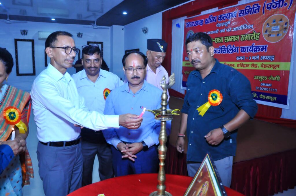 मेधावी छात्र/छात्राओं का सम्मान उत्तराखंड क्षत्रिय कल्याण समिति देहरादून द्वारा मैट्रिक और इंटरमीडिएट की बोर्ड परीक्षाओं में उत्तीर्ण मेधावी छात्रों को सम्मानित किया गया।देहरादून स्थित राजधानी वेडिंग प्वाइंट मैं आयोजित भव्य समारोह में 31 छात्र छात्राओं को स्मृति चिन्ह और नगद पुरस्कार से सम्मानित किया गया।इसके अलावा इस अवसर पर करियर काउंसिलिंग कार्यशाला का भी आयोजित किया गया। श्री शैलेन्द्र नेगी, नगर आयुक्त, ऋषिकेश, ब्रिगेडियर (सेवा नि) डॉक्टर यशवंत विष्ट , श्री एम एस बिष्ट सेवा नि. शिक्षा निदेशक, और श्री जी एस रावत निदेशक I A S coching centre dehradun नि छात्र छात्राओं का मार्ग दर्शन किया।2001 में स्थापित उत्तराखंड क्षत्रिय कल्याण समिति इस साल अपना रजत जयंती वर्ष माना रही है। समिति का उद्देश्य समाज के हर वर्ग के जरूरत मंद लोगों को मदद करना है। इस साल लगभग 2.50 लाख रुपए बीमारी लोगों, निर्धन छात्रों और मेधावी छात्रों को आर्थिक मदद की गई।समिति के अध्यक्ष श्री अतुल नेगी महासचिव श्री कुंवर सिंह पुंडीर, कोषाध्यक्ष श्री सुभाष रावत,जन संपर्क अधिकारी श्री दिगंबर नेगी ने सभी उपस्थिति सदस्यों का आभार किया और छात्रों को उज्ज्वल भविष्य की दी। समिति के अध्यक्ष नि बताया के समिति लगातार जनहित के कार्यां के प्रति दृढ़ संकल्प हैं और भविष्य मै भी इसे प्रकार समाज को अपनी सेवाएं देती रहेगी